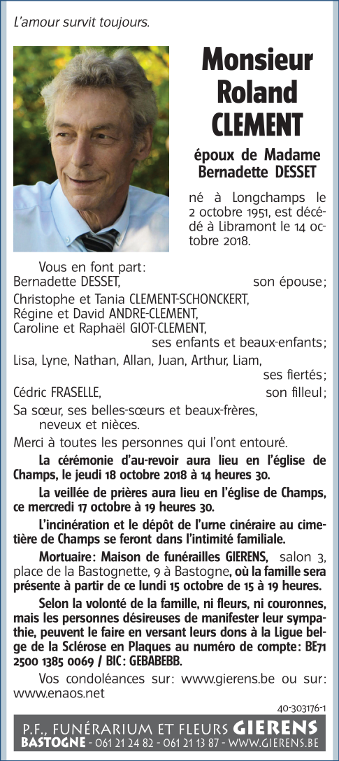 Décédé à Libramont-Chevigny (6800) le dimanche 14 octobre 2018 à l'âge de 67 ans