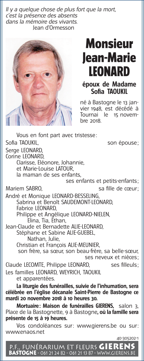Né à Bastogne (6600) le mardi 13 janvier 1948