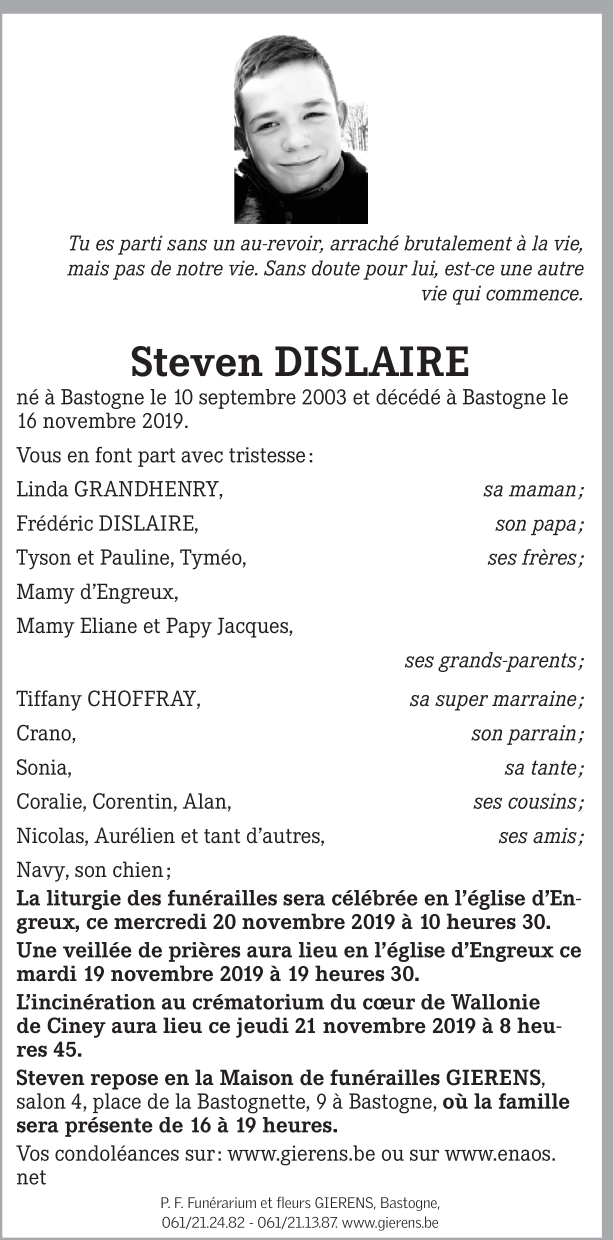 Décédé à Bastogne (6600) le samedi 16 novembre 2019 à l'âge de 16 ans