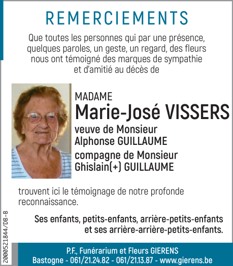 Décédée à Bastogne (6600) le vendredi 29 novembre 2019 à l'âge de 97 ans