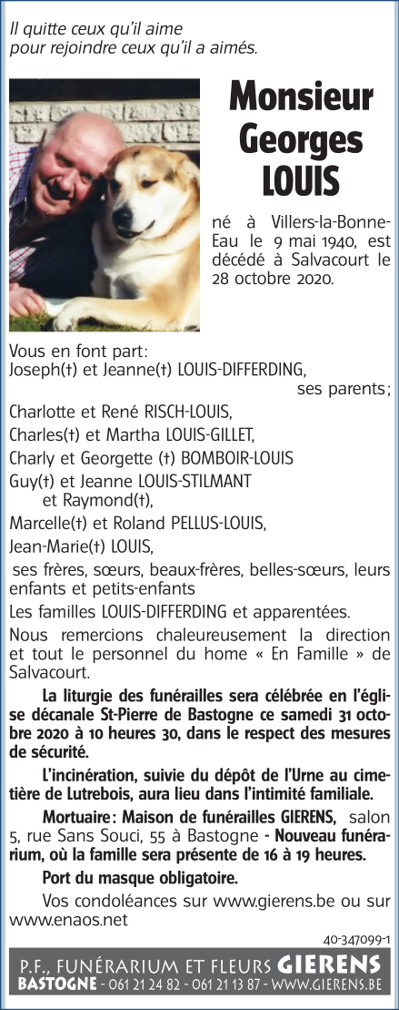 Décédé à Salvacourt (6640) le mercredi 28 octobre 2020 à l'âge de 80 ans