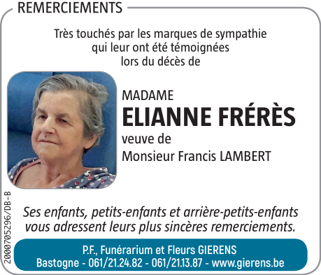 Décédée à Bastogne (6600) le samedi 17 octobre 2020 à l'âge de 78 ans