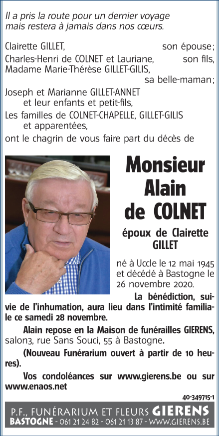 Décédé à Bastogne (6600) le jeudi 26 novembre 2020 à l'âge de 75 ans