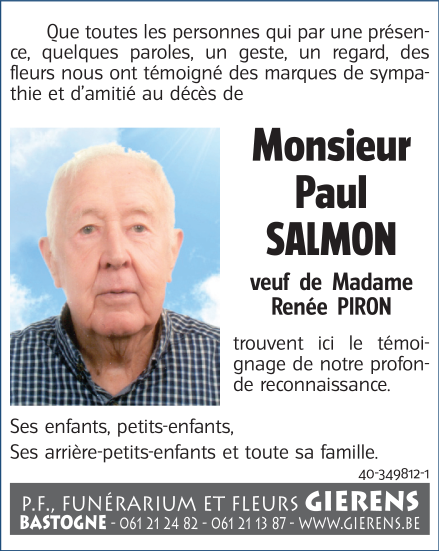 Décédé à Bastogne (6600) le lundi 9 novembre 2020 à l'âge de 94 ans