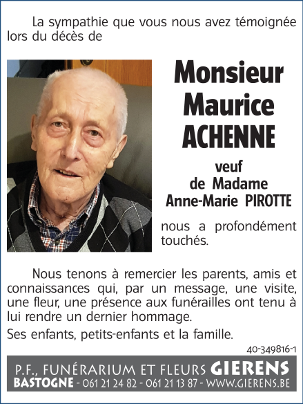 Décédé à Bastogne (6600) le dimanche 15 novembre 2020 à l'âge de 90 ans