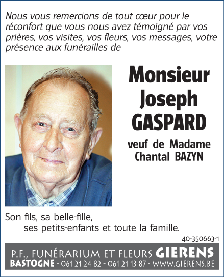 Décédé à Bastogne (6600) le dimanche 22 novembre 2020 à l'âge de 88 ans