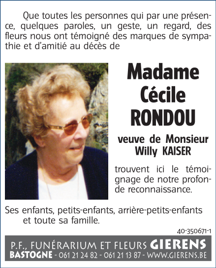 Décédée à Dinant (5500) le mardi 24 novembre 2020 à l'âge de 91 ans