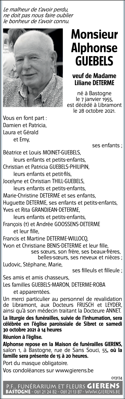 Décédé à Libramont-Chevigny (6800) le jeudi 28 octobre 2021 à l'âge de 66 ans