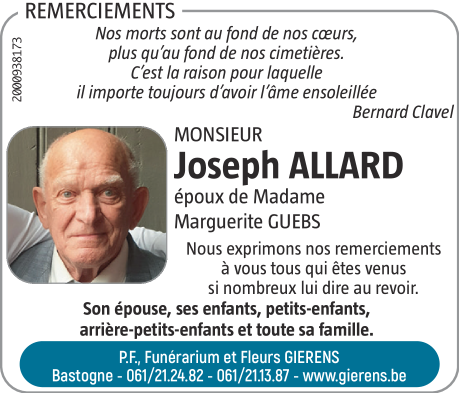 Décédé à Bertogne (6687) le jeudi 21 octobre 2021 à l'âge de 91 ans