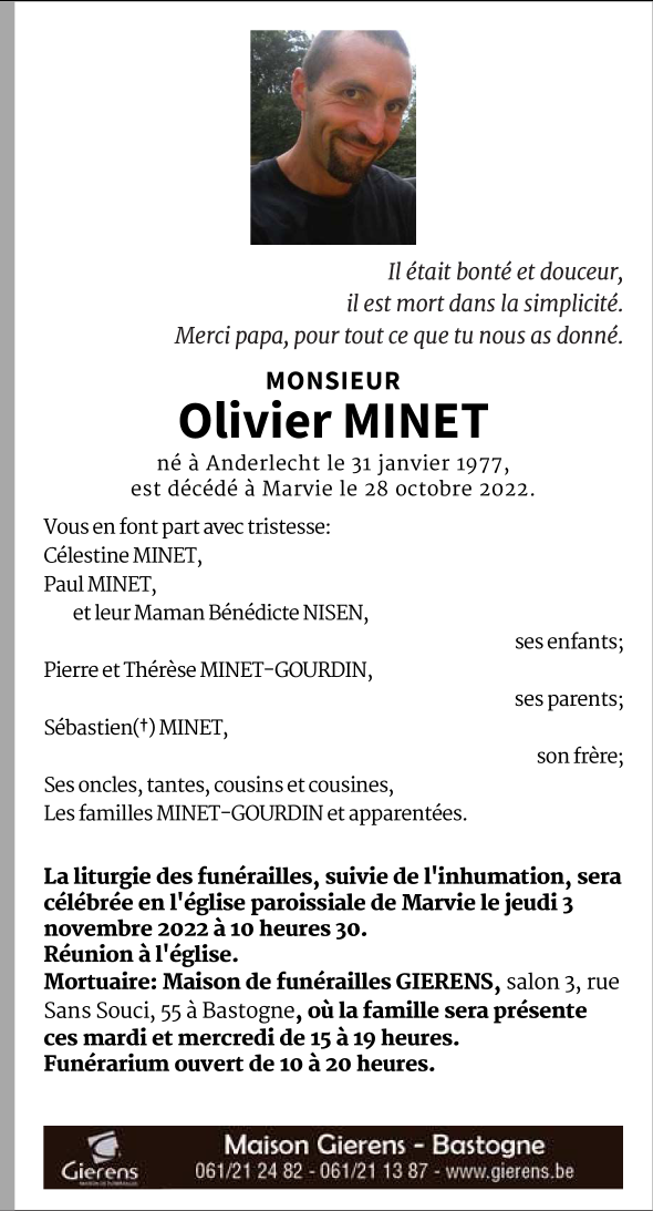 Décédé à Bastogne (6600) le vendredi 28 octobre 2022 à l'âge de 45 ans