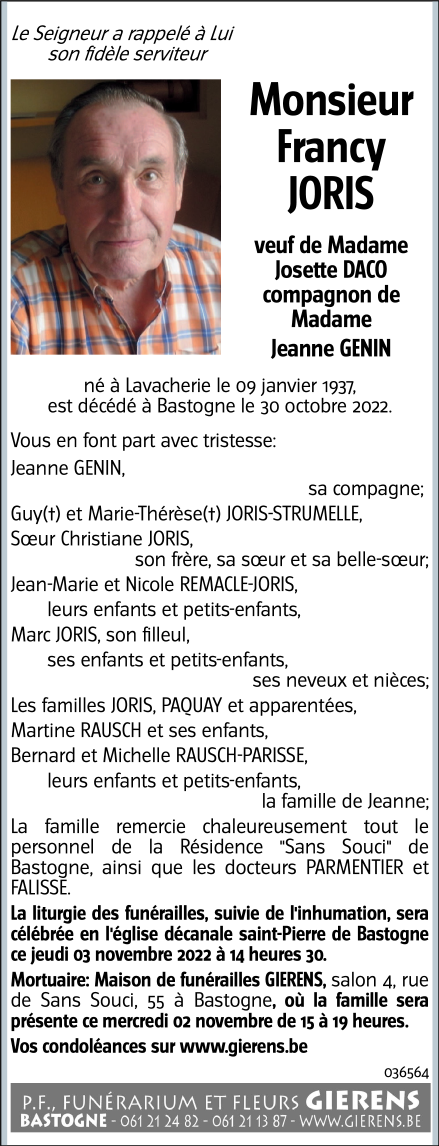 Décédé à Bastogne (6600) le dimanche 30 octobre 2022 à l'âge de 85 ans