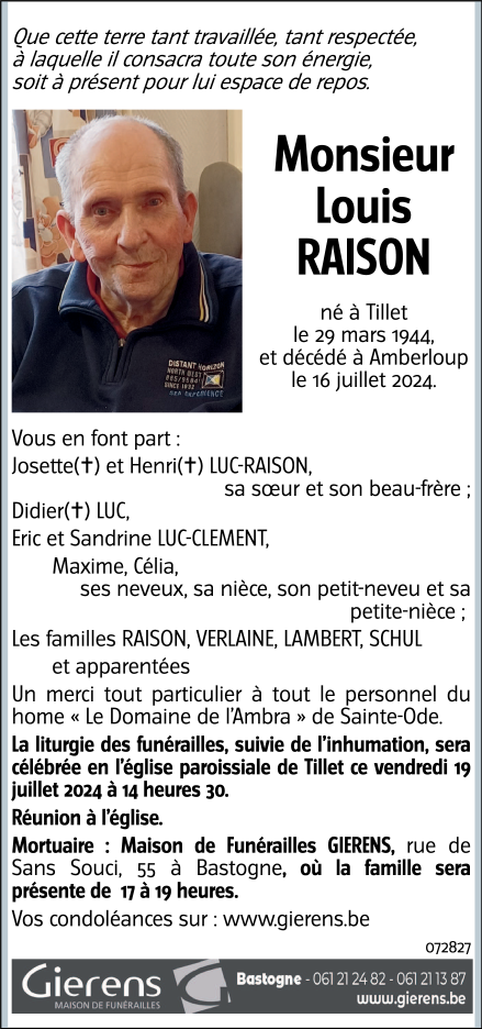 Décédé à Sainte-Ode (6680) le mardi 16 juillet 2024 à l'âge de 80 ans