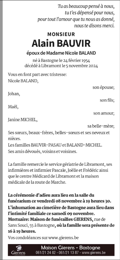 Décédé à Libramont-Chevigny (6800) le mardi 5 novembre 2024 à l'âge de 70 ans