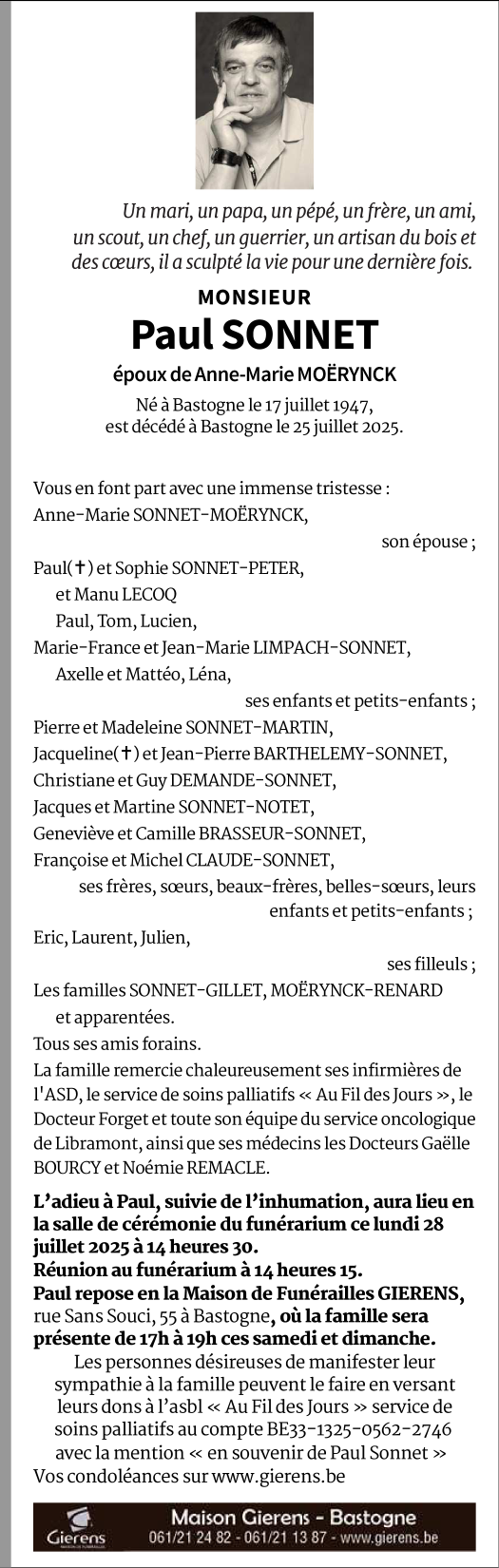 Décédé à Bastogne (6600) le vendredi 25 juillet 2025 à l'âge de 78 ans