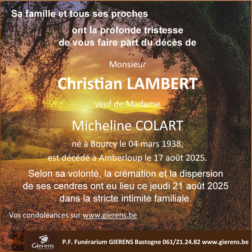 Veuf de Madame Micheline COLART