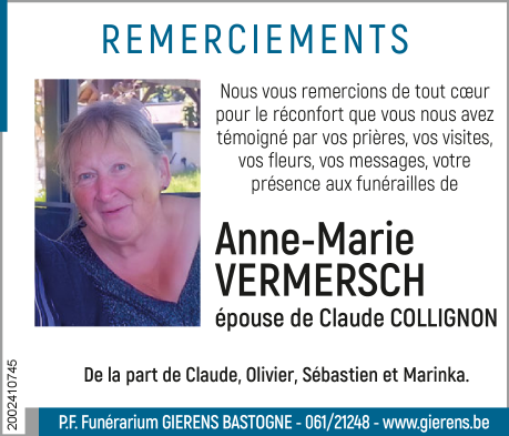 Décédée à Bastogne (6600) le mercredi 27 août 2025 à l'âge de 73 ans