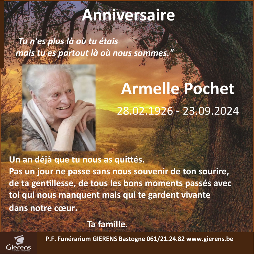 Décédée à Bastogne (6600) le lundi 23 septembre 2024 à l'âge de 98 ans