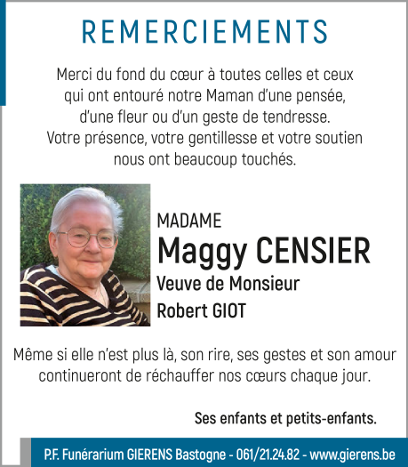 Décédée à Bastogne (6600) le mardi 21 octobre 2025 à l'âge de 78 ans