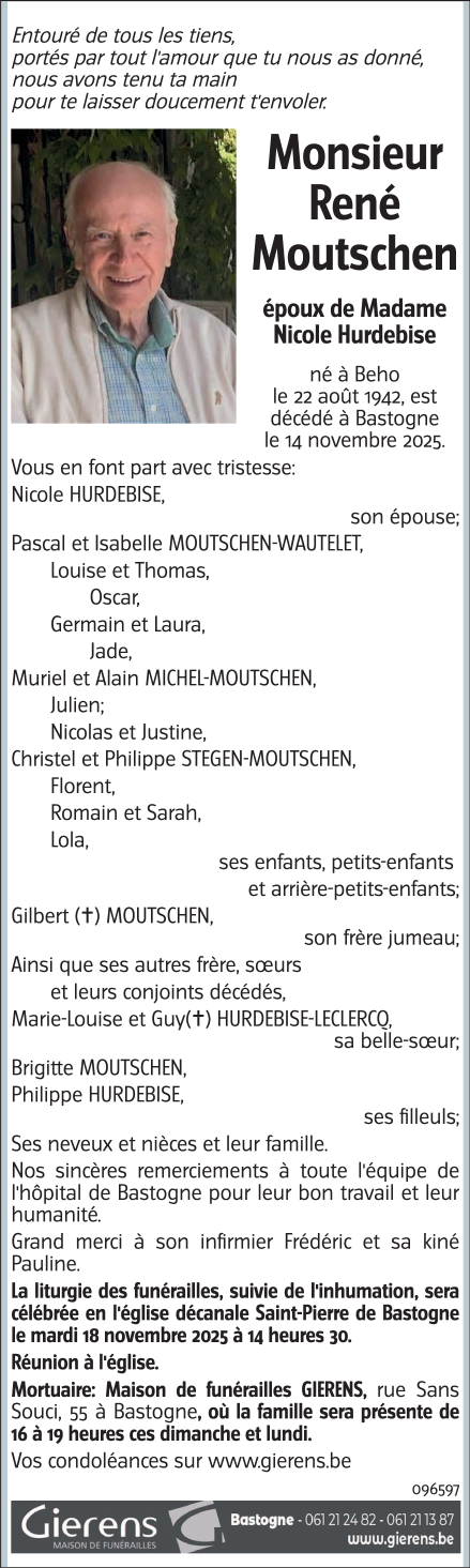 Décédé à Bastogne (6600) le vendredi 14 novembre 2025 à l'âge de 83 ans