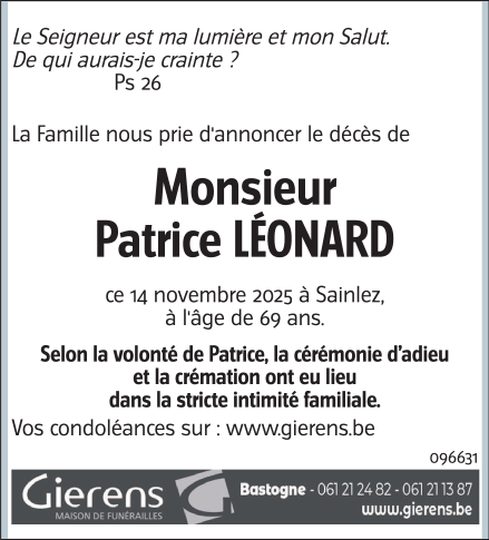 Décédé à Fauvillers (6637) le vendredi 14 novembre 2025 à l'âge de 69 ans