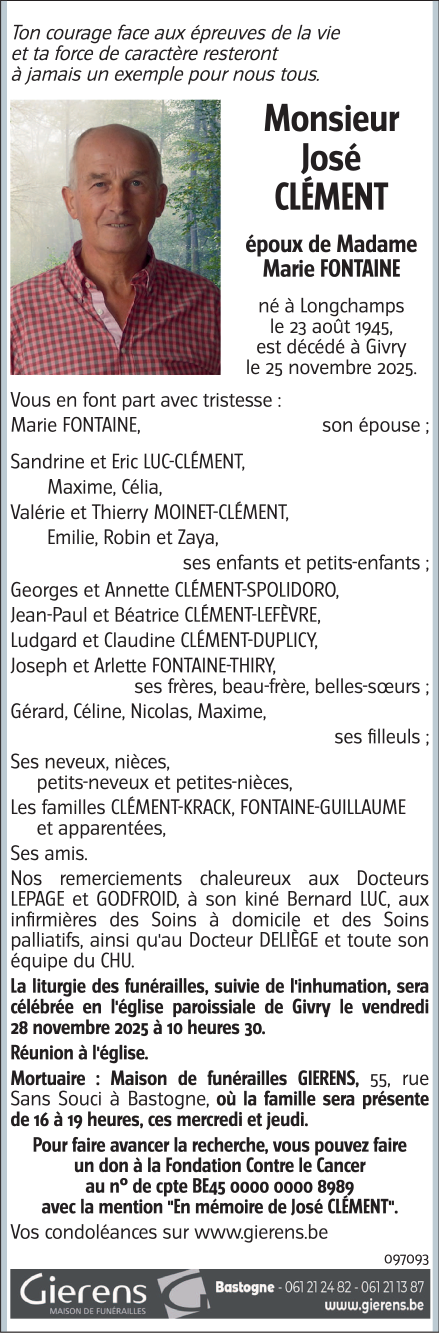 Décédé à Bertogne (6687) le mardi 25 novembre 2025 à l'âge de 80 ans