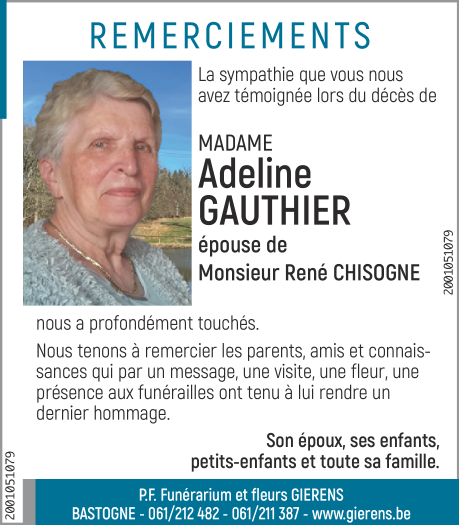 Décédée à Bastogne (6600) le samedi 12 février 2022 à l'âge de 81 ans