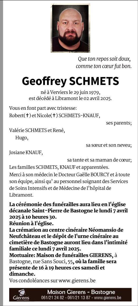 Décédé à Libramont-Chevigny (6800) le mercredi 2 avril 2025 à l'âge de 45 ans