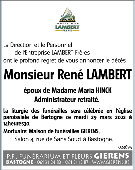 Décédé à Bastogne (6600) le samedi 26 mars 2022 à l'âge de 73 ans
