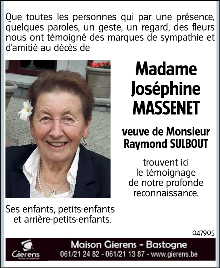 Veuve de Monsieur Raymond SULBOUT