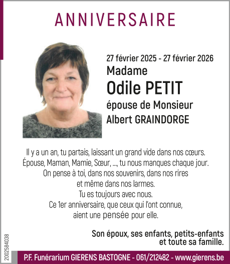 Décédée à Libramont-Chevigny (6800) le jeudi 27 février 2025 à l'âge de 74 ans