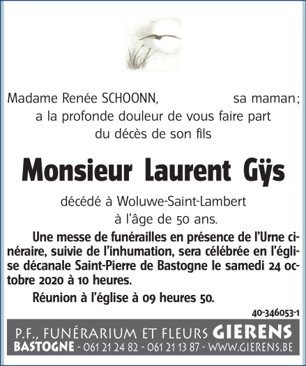 Décédé à Woluwe-Saint-Lambert (1200) le mardi 31 mars 2020 à l'âge de 50 ans