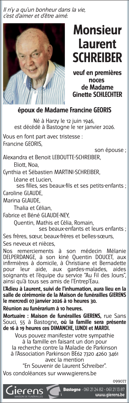 Décédé à Bastogne (6600) le jeudi 1 janvier 2026 à l'âge de 79 ans