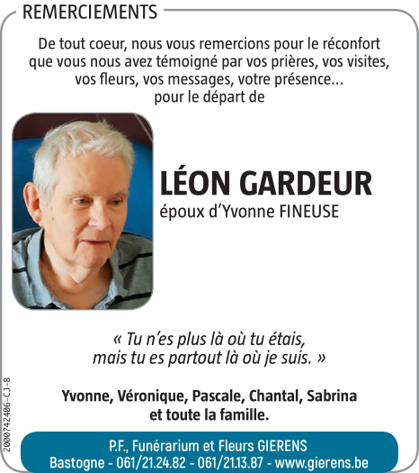 Décédé à Bastogne (6600) le dimanche 20 décembre 2020 à l'âge de 88 ans