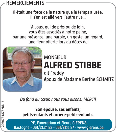 Décédé à Bastogne (6600) le mardi 8 décembre 2020 à l'âge de 95 ans