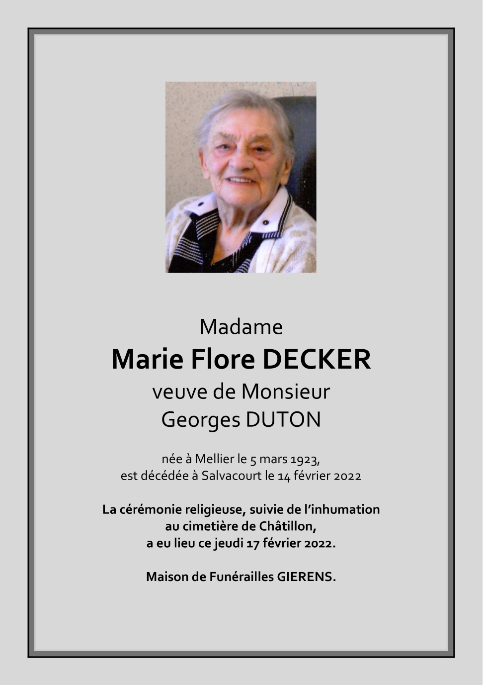 Décédée à Vaux-sur-Sure (6640) le lundi 14 février 2022 à l'âge de 98 ans