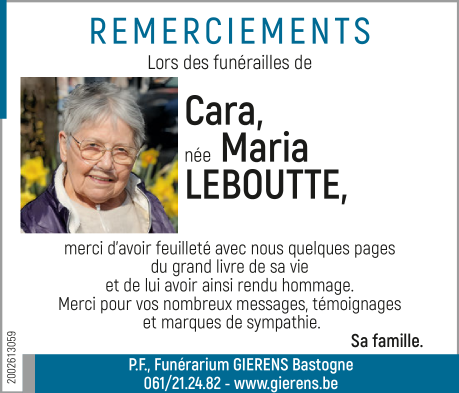Madame Maria dite "Cara" LEBOUTTE