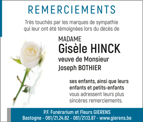 Décédée à Bastogne (6600) le lundi 29 janvier 2024 à l'âge de 89 ans