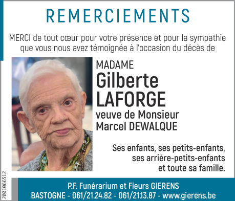 Décédée à Bastogne (6600) le vendredi 18 février 2022 à l'âge de 81 ans