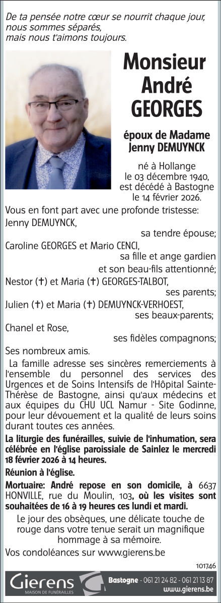 Décédé à Bastogne (6600) le samedi 14 février 2026 à l'âge de 85 ans