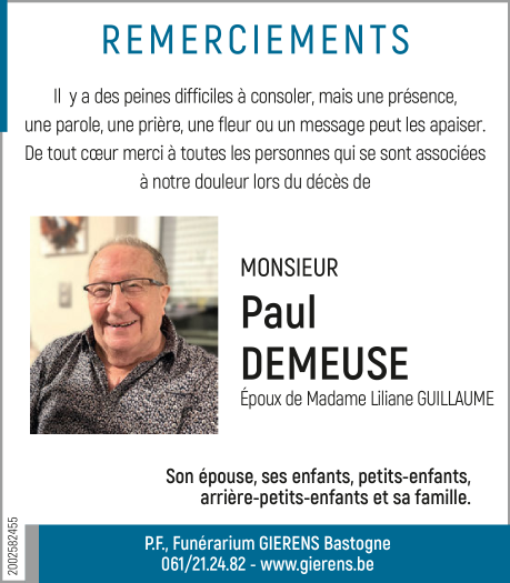 Décédé à Bastogne (6600) le samedi 31 janvier 2026 à l'âge de 84 ans