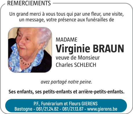 Décédée à Fauvillers (6637) le mardi 30 novembre 2021 à l'âge de 93 ans