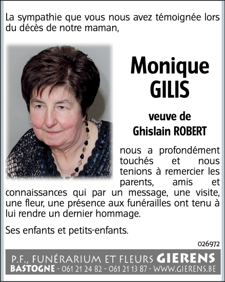 Veuve de Monsieur Ghislain ROBERT