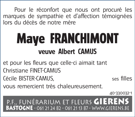 Décédée à Bastogne (6600) le dimanche 22 décembre 2019 à l'âge de 101 ans
