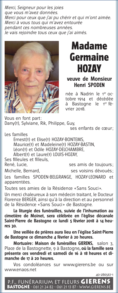 Madame Germaine Marie Henriette HOZAY