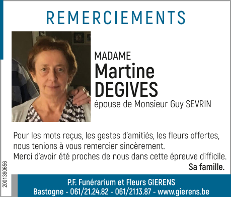 Décédée à Bastogne (6600) le jeudi 29 décembre 2022 à l'âge de 64 ans