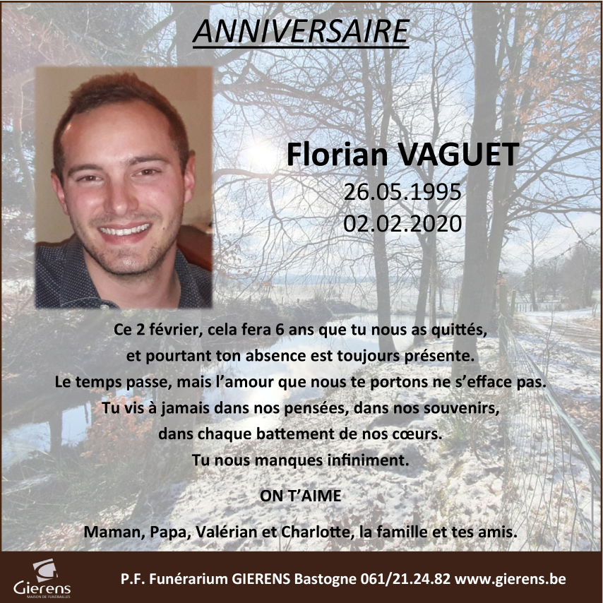 Décédé à Bruxelles (Watermael-Boitsfort) (1170) le dimanche 2 février 2020 à l'âge de 24 ans