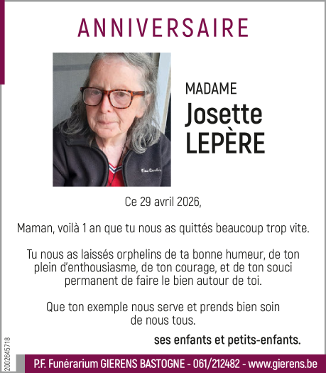 Née à Bastogne (6600) le vendredi 16 mai 1941