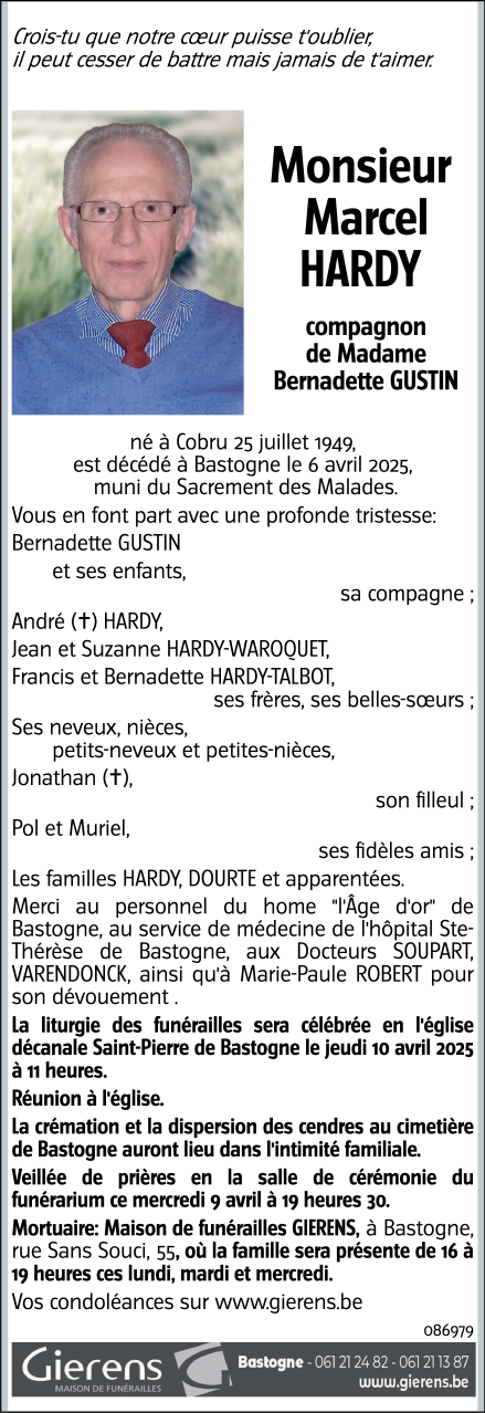 Décédé à Bastogne (6600) le dimanche 6 avril 2025 à l'âge de 75 ans