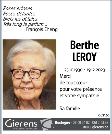 Décédée à Bastogne (6600) le mardi 19 décembre 2023 à l'âge de 93 ans