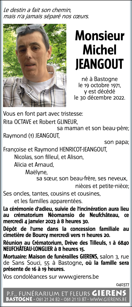 Décédé à Bastogne (6600) le vendredi 30 décembre 2022 à l'âge de 51 ans